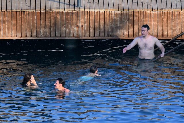 Ailece keyifli vakit geçiren Sağyaşar ile Şendil, bir ara sıcaktan bunalınca kendilerini Bodrum'un serin sularına bıraktı.