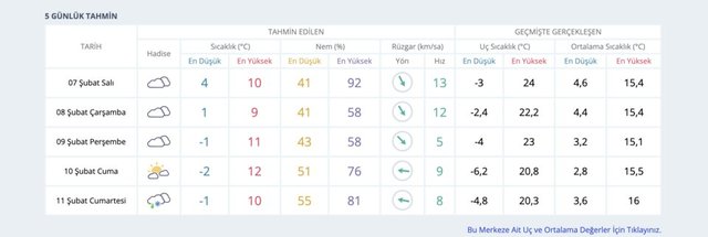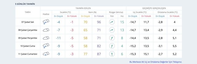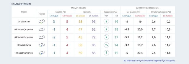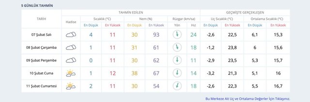 MALATYA 5 GÜNLÜK HAVA DURUMU RAPORU