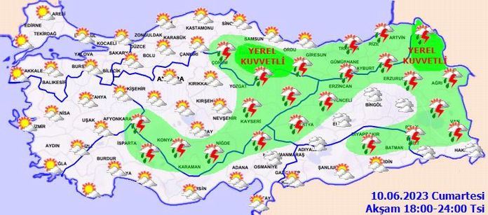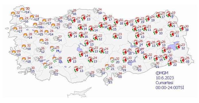 Meteoroloji Genel Müdürlüğü tarafından yapılan son değerlendirmelere göre ülkemiz genelinin parçalı ve çok bulutlu, Akdeniz’in iç kesimleri, (Eskişehir hariç) İç Anadolu, Orta ve Doğu Karadeniz, Doğu Anadolu, Güneydoğu Anadolu’nun kuzey ve doğusu ile Afyonkarahisar, Karabük ve Kastamonu çevrelerinin sağanak ve gök gürültülü sağanak yağışlı geçeceği tahmin ediliyor.