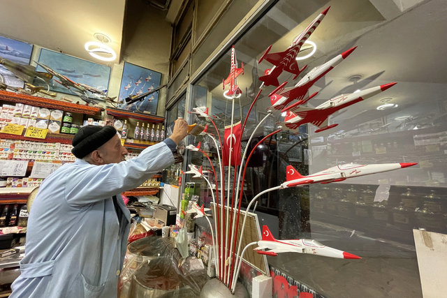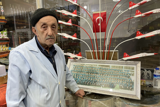 Elazığ'da baharatçılık yapan 73 yaşındaki Atilla Demirbaş, 60 yılda biriktirerek gözü gibi baktığı maket uçakları iş yerinde sergiliyor