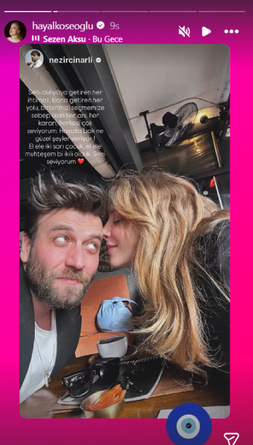 Hayal Köseoğlu ve Nezir Çınarlı, birlikteliklerinin ikinci yılını sosyal medya hesaplarından yaptıkları paylaşımlarla kutladı. Köseoğlu sevgilisine, "Dünyaya bir daha gelsem yine seninle yaşlanmayı seçerim" sözleriyle seslendi