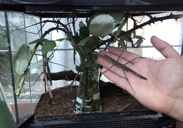 Hareketsiz olduğu durumda ise şekli sayesinde görülmesi çok zor olduğu için 'hayalet' unvanını alan böcek, bahçeyi gezenlerden büyük ilgi görüyor.