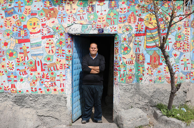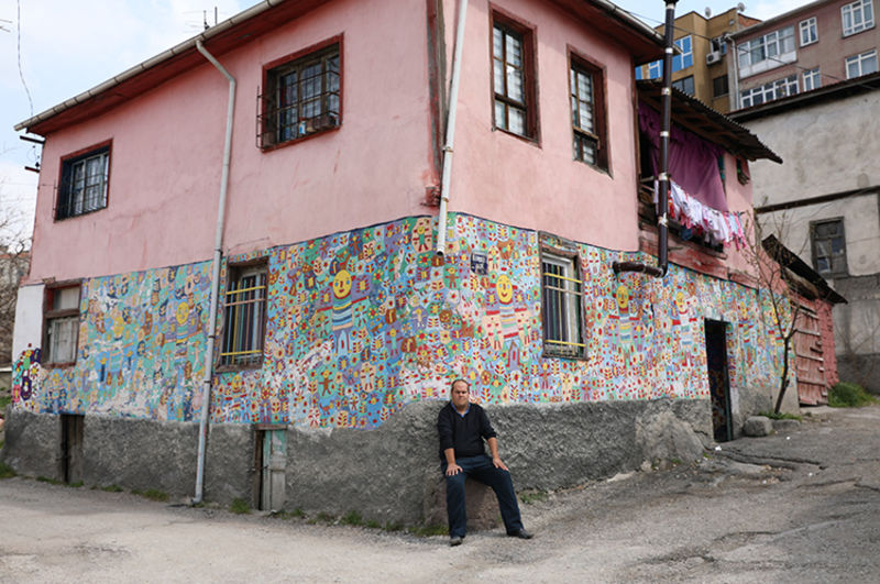 Atölyesine sığmayıp evinin iç ve dış duvarlarını resimleriyle donatan Yalçın'ın yeteneği yerli ve yabancı turistlerin de ilgisini çekti.