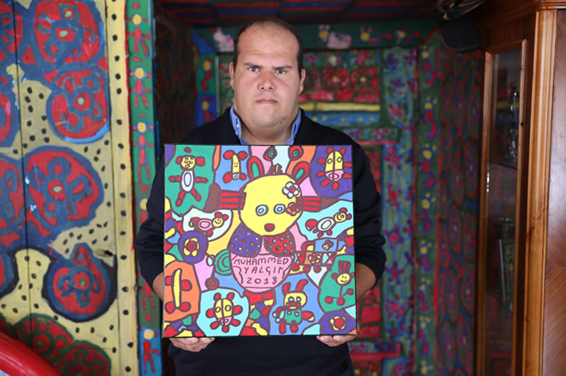 Ankara'da yaşayan zihinsel engelli Muhammed Yalçın, çizdiği dikkat çekici figürler ve tuvalinden taşarak evinin duvarlarına yansıyan resim tutkusuyla hayatına renk katıyor
