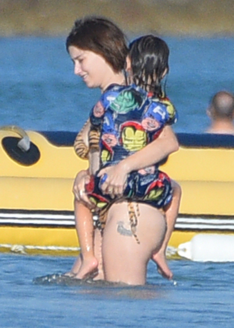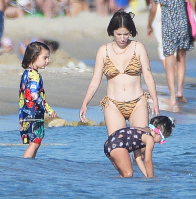 Leopar desenli bir bikini giymeyi tercih ettiği görülen Hazal Kaya, çocuklarıyla birlikte denize girdi.