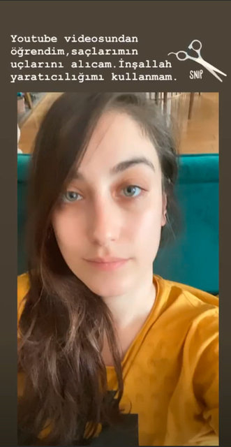 YouTube videosundan öğrendim, saçlarımın uçlarını alacağım. İnşallah yaratıcılığımı kullanmam.