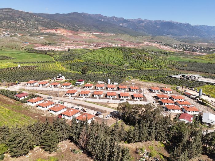 Hatay Büyükşehir Belediyesi (HBB), deprem sonrası yeniden yapılanma çalışmaları kapsamında Kırıkhan ilçesine bağlı Karamağara Mahallesi'nde yapımı tamamlanan köy evlerini törenle teslim etti