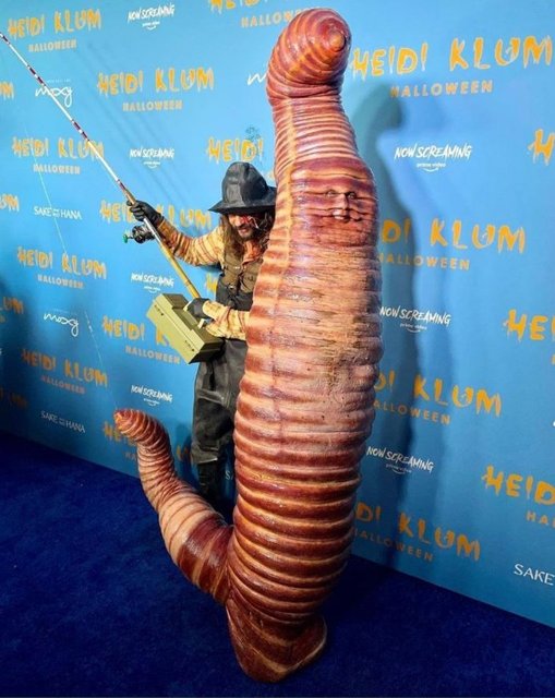 Klum'un eşi ise solucanı tutan balıkçı kostümü tercih etmiş.