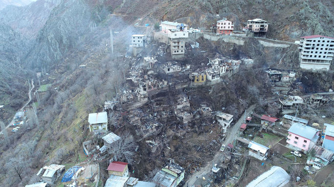 Korku dolu anların yaşandığı köyde bakanlıklar ve bağlı kuruluşların çalışmaları ile yangının izleri silinmeye çalışılıyor. Köydeki acil ihtiyaçlar için AFAD tarafından acil yardım ödeneğinden 1 milyon lira, Çevre ve Şehircilik Bakanlığı’ndan 1 milyon lira ve Aile, Çalışma ve Sosyal Hizmetler Bakanlığı tarafından da 1,5 milyon gönderildi. Evi yananlara ilk etapta 15 bin lira ödenecek. Köyde TOKİ tarafından 21 binada 52 konut ile 60 dolayında ahır ve samanlık inşa edilecek. Zemin etüt çalışmasının ardından binaların inşaatı başlayacak. Binalar taş ve ahşap karışımlı yatay mimarili olacak.
