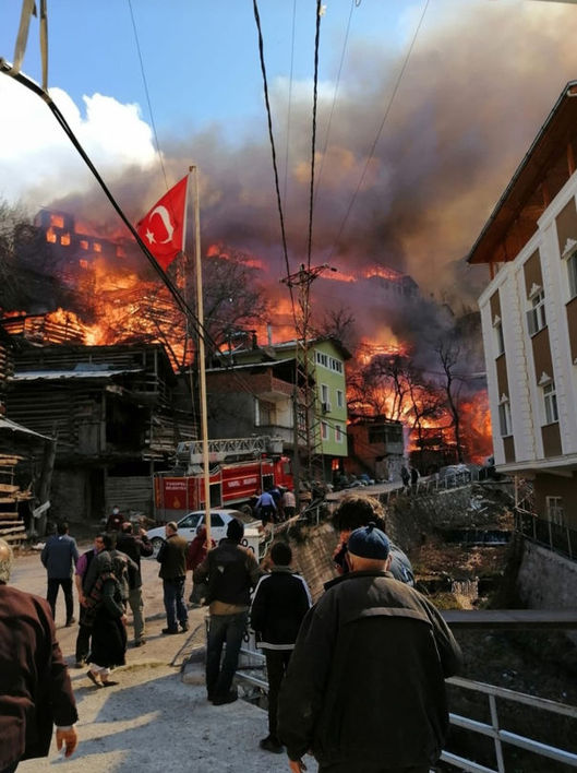 Yusufeli ilçesinin 176 haneli, 400 nüfuslu Dereiçi köyünde, çarşamba günü öğle saatlerinde bir evde başlayan yangın, rüzgarın da etkisiyle yayılarak bitişikteki evlere sıçradı. Evleri yanan aileler, kendilerini dışarı atarak ahırlardaki hayvanlarını kurtarmaya çalıştı.
