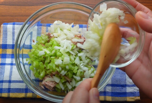 Bu aşamada ekmeğinizin iç harcını hazırlayabilirsiniz. Derin bir kaba yağını süzdüğünüz ton balığınızı ekleyin.
