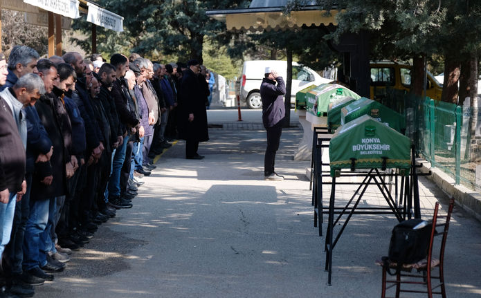 Konya'da babası Nurettin (50), annesi Canfeda (51) ve kardeşi Hasan Can (17) ile onları pompalı tüfekle öldürüp intihar eden Ali Tunç (28), yan yana toprağa verildi.