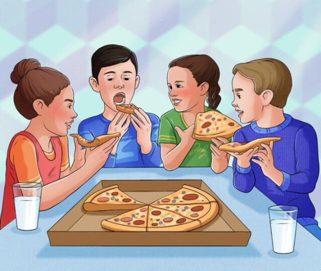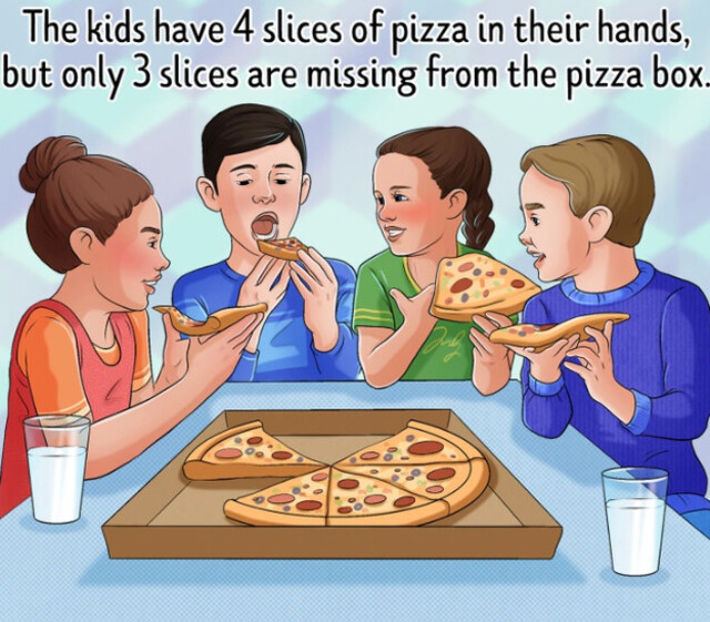 Cevap: Kutudaki pizzada 3 eksik varken çocukların elinde 4 dilim pizza var!