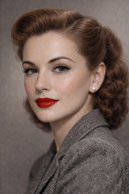 1940’lı yıllar, savaşın gölgesinde şekillenen ama kadınların güzellikten vazgeçmediği bir dönem olarak öne çıktı. Savaş yıllarında kozmetik ürünlere erişimin kısıtlı olması, kadınları daha sade ve doğal bir makyaj stiline yöneltti. Bu dönemde ten makyajı hafif tutulurken, doğal ve sağlıklı bir cilt görünümü ön plandaydı. En dikkat çekici detay ise kırmızı rujdu; adeta moral ve güçlü kadın imajının simgesi haline geldi. Kaşlar belirgin ama abartısız, daha doğal bir formda kullanıldı.
