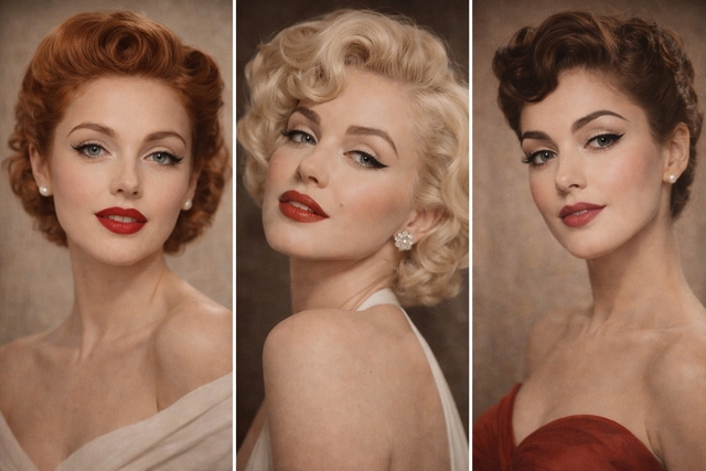 Dudaklarda kırmızı tonlar popülerliğini korurken, daha yumuşak pembe ve şeftali tonları da öne çıkmaya başladı. Allık kullanımı belirginleşti ve yüz hatlarını daha canlı göstermek için sıkça tercih edildi. Göz makyajında pastel tonlar kullanılsa da genel görünüm hâlâ dengeli ve kontrollüydü. Kaşlar daha şekilli ve bakımlı bir forma büründü. Hollywood yıldızlarının etkisiyle bu “kusursuz kadın” imajı geniş kitlelere yayıldı. 1950’ler makyajı, feminenliğin en rafine ve ikonik dönemlerinden biri olarak hafızalara kazındı.