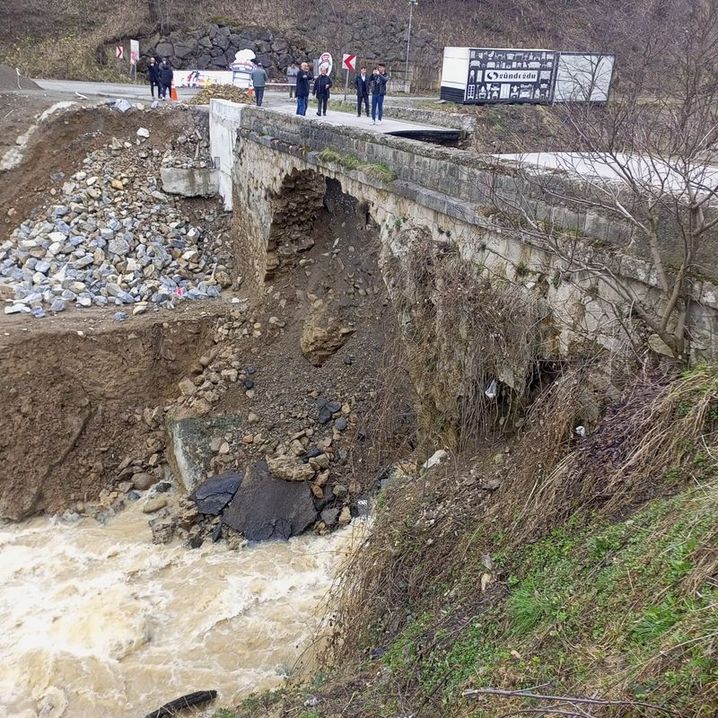 Trabzon'da iki mahalle arasında ulaşımı sağlayan köprü, meydana gelen heyelanda çöktü. Olayda şans eseri herhangi bir facia yaşanmadı