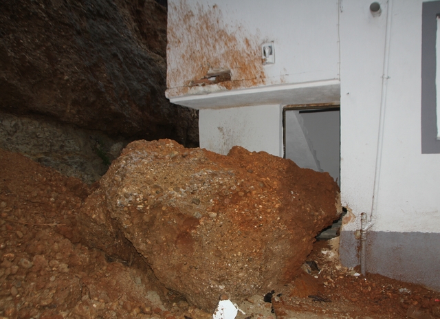 Heyelanda kopan kayanın çarptığı evde mahsur kaldılar