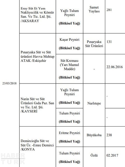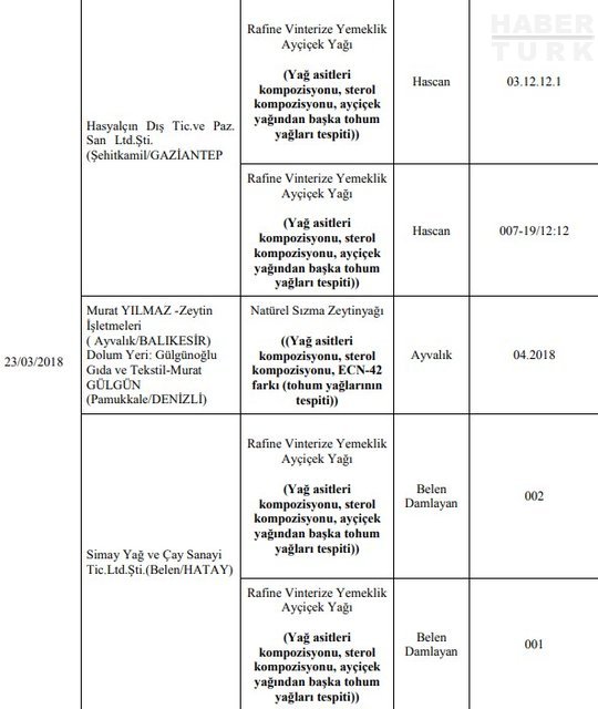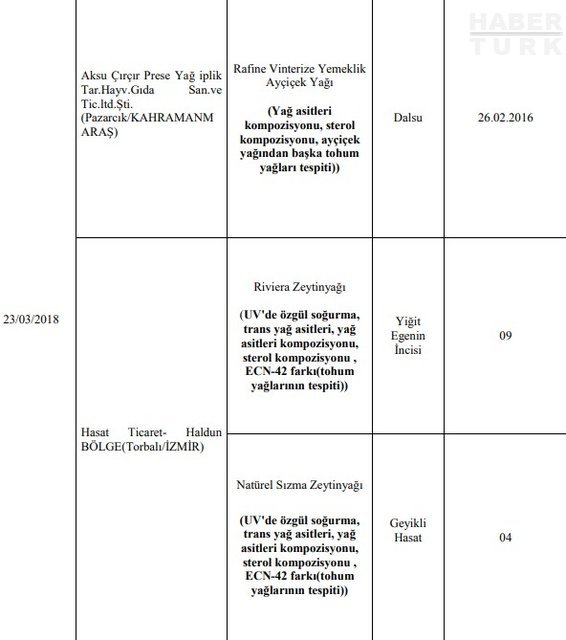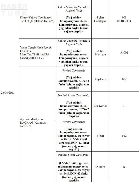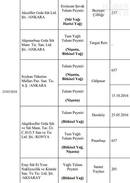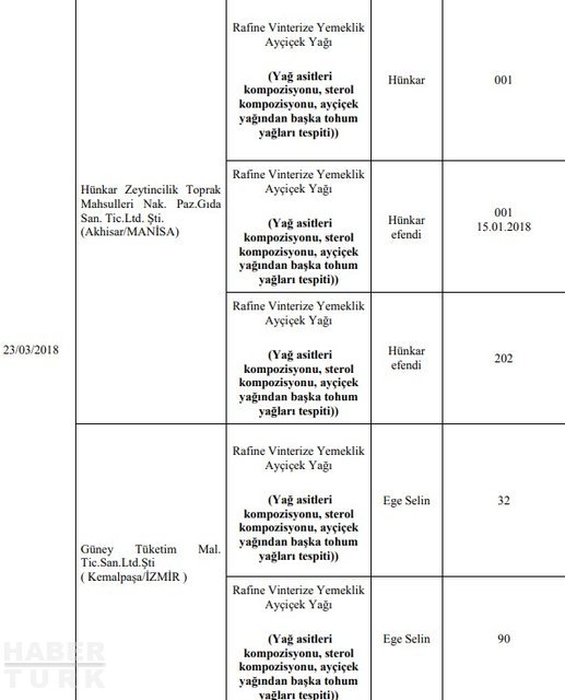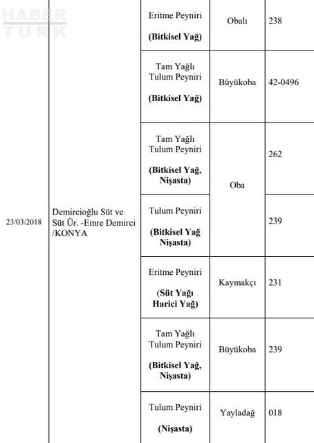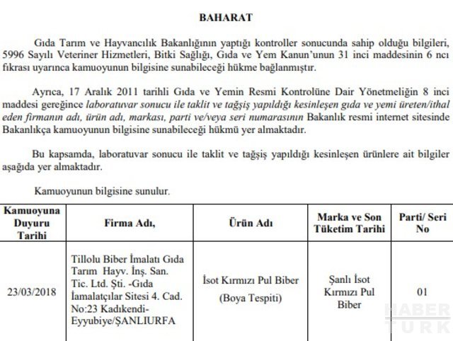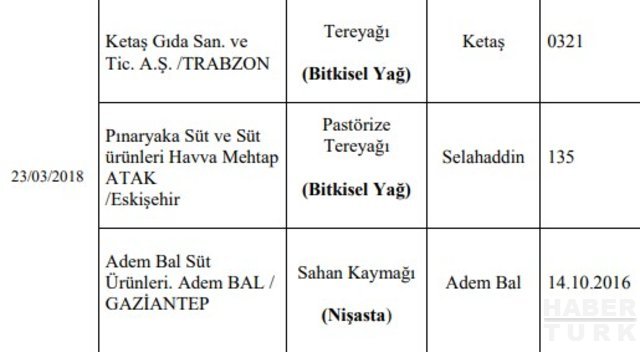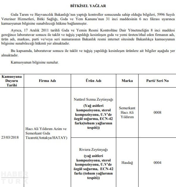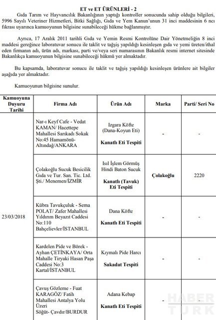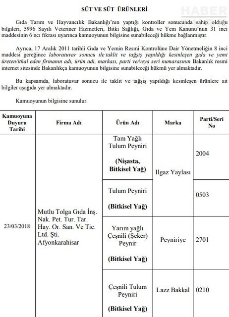 Bakanlık tarafından yapılan açıklamada, "5996 sayılı “Veteriner Hizmetleri, Bitki Sağlığı, Gıda ve Yem Kanunu” ve bu Kanun kapsamında hazırlanan, “Gıda ve Yemin Resmi Kontrollerine Dair Yönetmelik” gereğince; laboratuvar sonucuyla taklit veya tağşiş yapıldığı kesinleşen gıdaları üreten/ithal eden; kişilerin hayatını ve sağlığını tehlikeye düşürecek şekilde bozulmuş, değiştirilmiş gıdaları üreten ve/veya satan firmanın adı, ürün adı, markası, parti ve/veya seri numarasını içeren bilgiler kamuoyunun bilgisine sunulmaktadır." denildi. İşte Gıda, Tarım ve Hayvancılık Bakanlığı tarafından yayınlanan 282 hileli ürün listesi...
