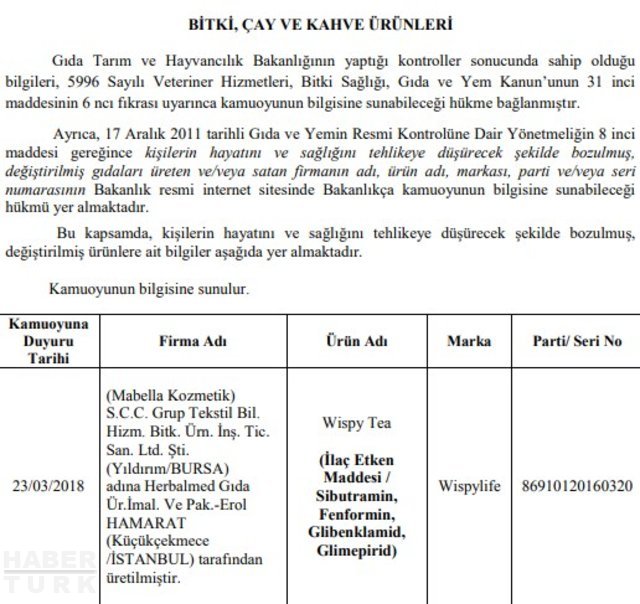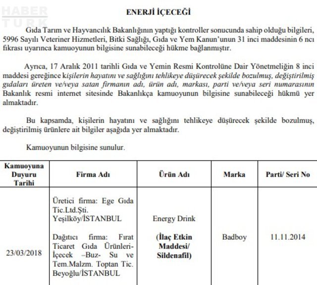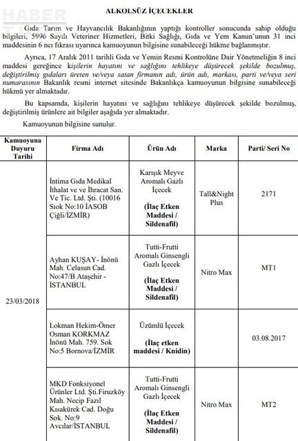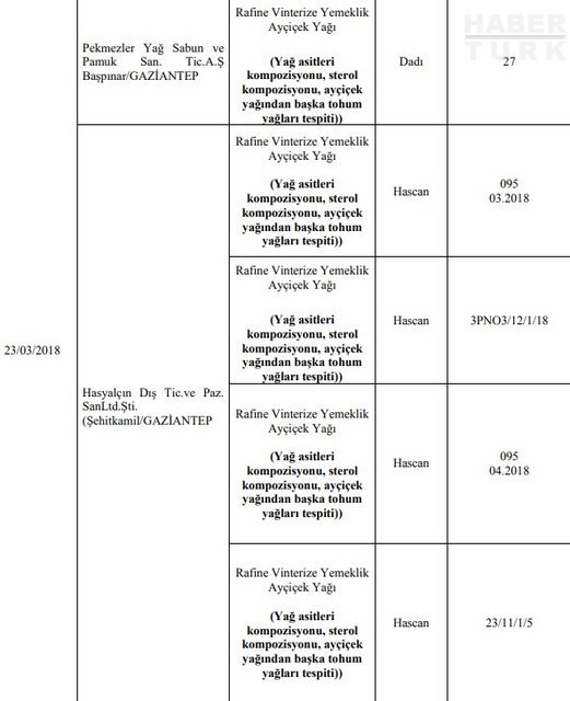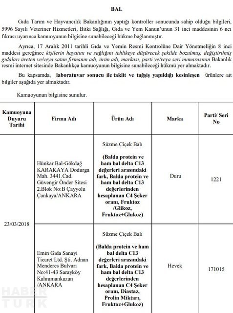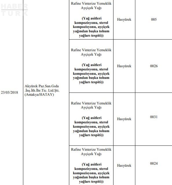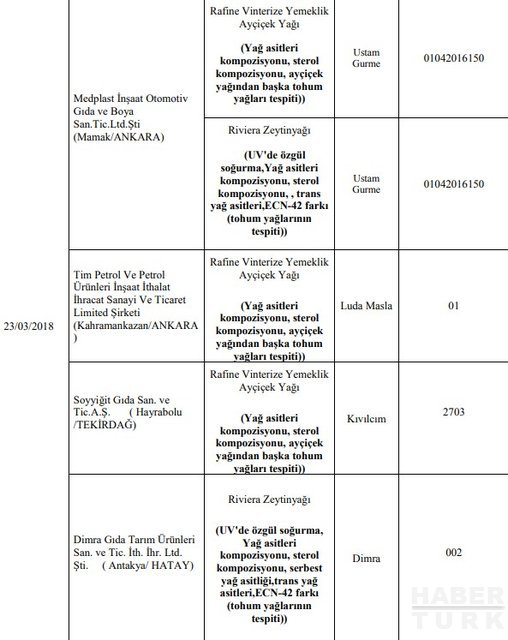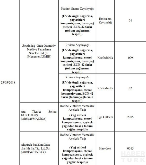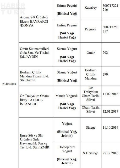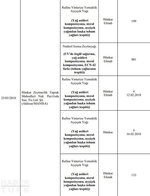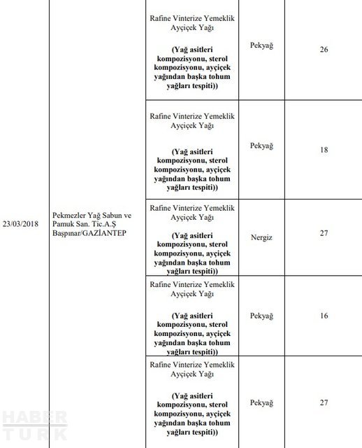 Bakanlık tarafından yapılan açıklamada, "5996 sayılı “Veteriner Hizmetleri, Bitki Sağlığı, Gıda ve Yem Kanunu” ve bu Kanun kapsamında hazırlanan, “Gıda ve Yemin Resmi Kontrollerine Dair Yönetmelik” gereğince; laboratuvar sonucuyla taklit veya tağşiş yapıldığı kesinleşen gıdaları üreten/ithal eden; kişilerin hayatını ve sağlığını tehlikeye düşürecek şekilde bozulmuş, değiştirilmiş gıdaları üreten ve/veya satan firmanın adı, ürün adı, markası, parti ve/veya seri numarasını içeren bilgiler kamuoyunun bilgisine sunulmaktadır." denildi. İşte Gıda, Tarım ve Hayvancılık Bakanlığı tarafından yayınlanan 282 hileli ürün listesi...