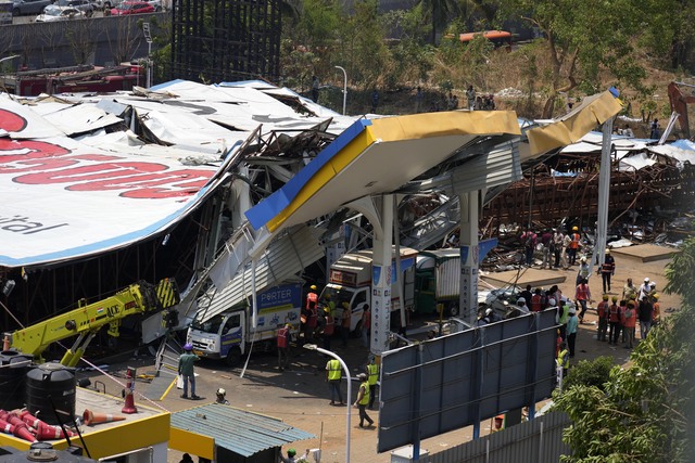India Today'in haberine göre, Mumbai kentinin Ghatkopar bölgesinde dün yaşanan toz fırtınası nedeniyle bir akaryakıt istasyonunun üzerine reklam panosu düştü, çok sayıda araç panonun altında kaldı.