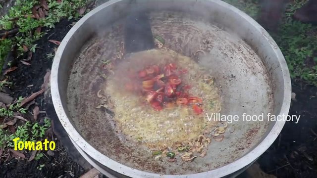 Yağ ve kırmızı biber tencerede kızdırıldı.