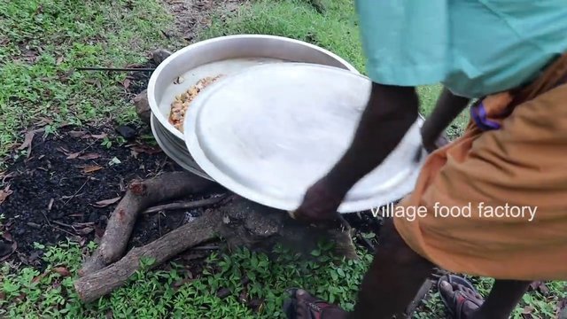 Kavrulan etin iyice pişmesi için tencerenin ağzı kapatıldı.