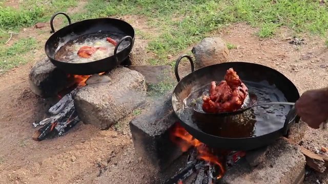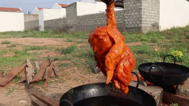 Village Food Factory isimli YouTube kanalından yemek videoları paylaşan Hintli amca, kısıtlı malzemelerle ilginç yemekler hazırlıyor. Oğlunun yüklediği videolarla ünlenen Hintli adam bu sefer de açık alanda bütün tavuk kızarttı