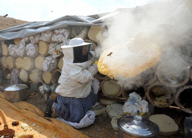 "Kovanları bahar ayında 70 kilometre uzaklıktaki yüksek rakımlı yaylalara bırakıyoruz. Yaylalarda ağırlıklı olarak geven bitkisi bulunduğu için bal daha kaliteli oluyor. Her yıl ekim ayında hasat sezonu başlıyor. Bin kovandan yaklaşık 8 ton bal hasat ediyoruz. 140 kilometre geliş gidiş yapıyoruz. Zor ama geçimimizi arıcılıkla sağladığımız için mecburen bu işi yapıyoruz."