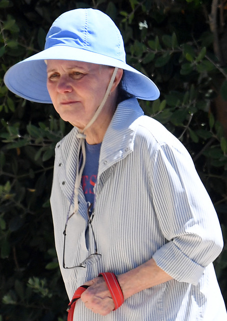 Çizgili mavi - beyaz bir gömlek ile bol beyaz bir şort ve spor ayakkabı kombinini şapkayla birleştiren Sally Field'ı yanından geçenler bile tanımakta zorlandı.