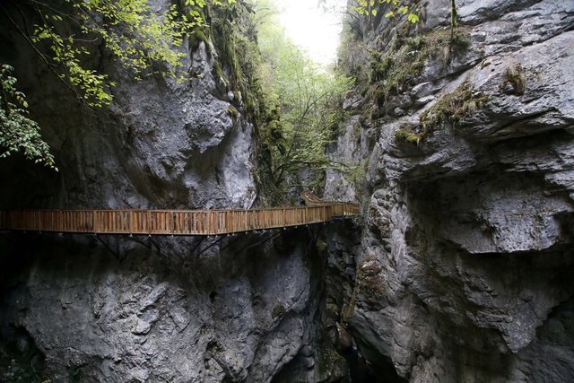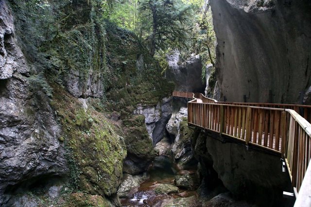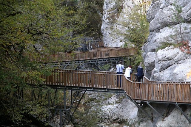 Vidalarla kayalara çivilenen ahşap platform ile bir ucundan diğer ucuna geçilebilen Kastamonu'nun Pınarbaşı ilçesindeki Horma Kanyonu, son bir ayda çok sayıda ziyaretçi ağırladı