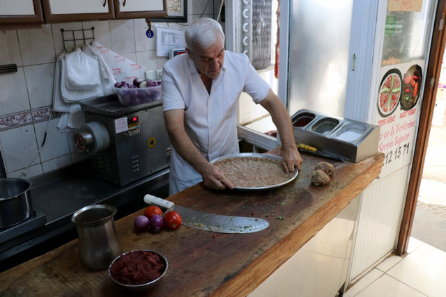 Künefe ustası 65 yaşındaki Mustafa Sertbaş, büyüklerinden geleneksel olarak köz ateşi üzerinde yapmayı öğrendiği künefeyi Uzun Çarşı içerisinde yıllardır müşterilerine sunduğunu söyledi.