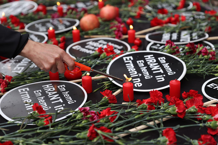 Şişli Halaskargazi Caddesi'ndeki eski Agos gazetesinin önünde düzenlenen anma törenine eşi Rakel Dink, çocukları, bazı milletvekilleri ve arkadaşları katıldı.