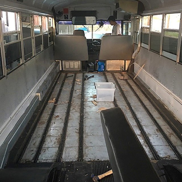 Genç adamın attığı ilk adım, otobüsün içerisindeki eski eşyalardan, masalardan, sandalyelerden kurtulmak oldu.