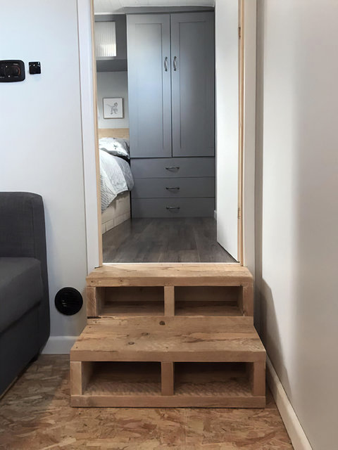 Ayrıca sızıntıyı önlemek için çatıya kaplama yaptı. Mekanı sıcak tutmak için duvarlarda yalıtım malzemesi kullandı ve kırık camları değiştirdi. Scott, alt kat için yaşam ve yemek alanı ile banyo, üst kat için ise uyku bölümü tasarladı.