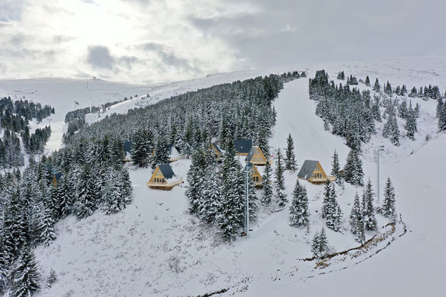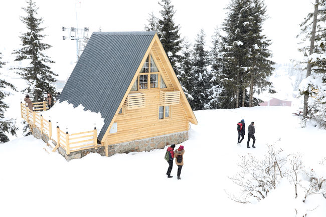 Ordu'da 2 bin rakımlı Çambaşı Yaylası'nda büyükşehir belediyesince inşa edilen ahşap bungalov evlerde kalan yerli ve yabancı turistler kış güzelliğinin yaşandığı yayladaki eşsiz manzaranın keyfini çıkarıyor.