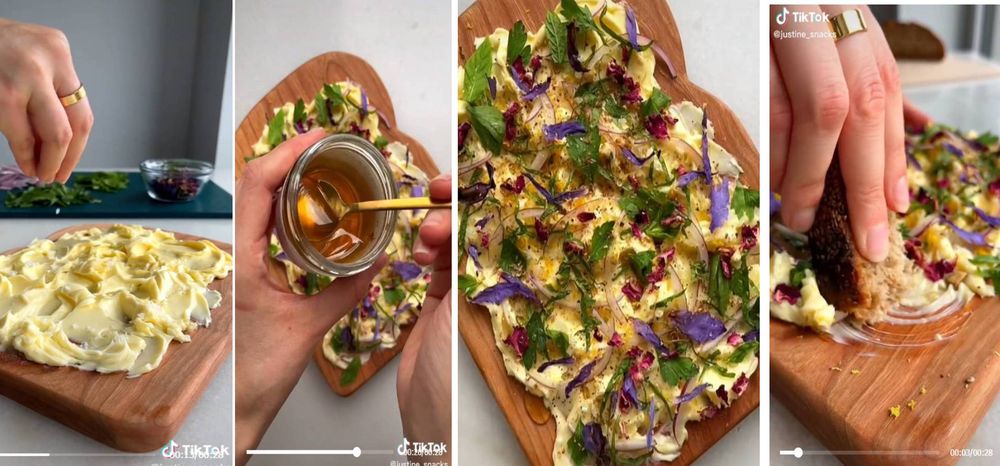 Bu trendi TikTok'ta tereyağı tabağı paylaşarak başlatan @justine_snacks hesabının sahibi Justine Doiron olmuş.
