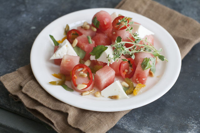 Karpuz denildiğinde hemen hepimizin aklında ilk olarak ‘peynir’ geliyor. Zira karpuz-peynir yaz aylarında ara öğünlerin vazgeçilmez ikilisini oluşturuyor. Uzun süreli tokluk sağlamayan karpuzun yanında iyi bir protein kaynağı olan peynir tüketmeniz kan şekerini dengeleyerek doygunluk, dolayısıyla porsiyon kontrolü sağladığı için aynı zamanda da faydalı. Ancak dikkat! Beslenme ve Diyet Uzmanı Ezgi Hazal Çelik, “Günlük tuz tüketiminin artmaması için ara öğünde bir porsiyon az tuzlu peynirle bir porsiyon (yaklaşık 200 gram) karpuz miktarını aşmayın” uyarısında bulunuyor.