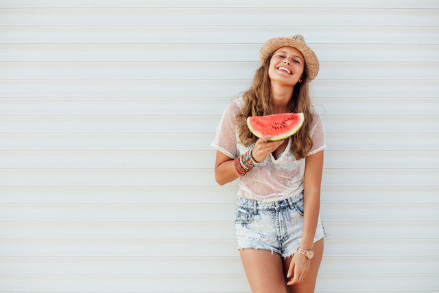 Karpuz; elma, armut ve muz gibi meyvelerden farklı olarak uzun süreli tokluk sağlamıyor, mideyi şişirerek kısa süreli doygunluk hissetmenize yol açıyor. Bu nedenle karpuzun yanında peynir gibi protein kaynağı ya da ceviz, badem ve fındık gibi yağlı tohumları tüketmeniz hem daha uzun süre tok kalmanıza hem de tükettiğiniz karpuz porsiyonunun kontrollü olmasına yardımcı olacaktır.