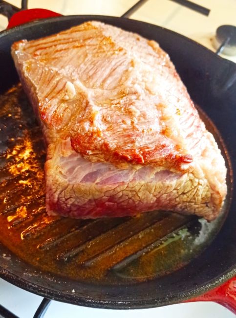 Etin bir tarafında sadece yağ tabakası olmalıdır bu detaya dikkat edin diğer noktaları temizleyin. Üstte iyi kızarmış bir kabuk olmalı. Etin yağı sadece tuz ve karabiberle tatlandırılmış olmasına rağmen üst tabakasının kabuk bağlamasıyla ete inanılmaz bir lezzet verir.