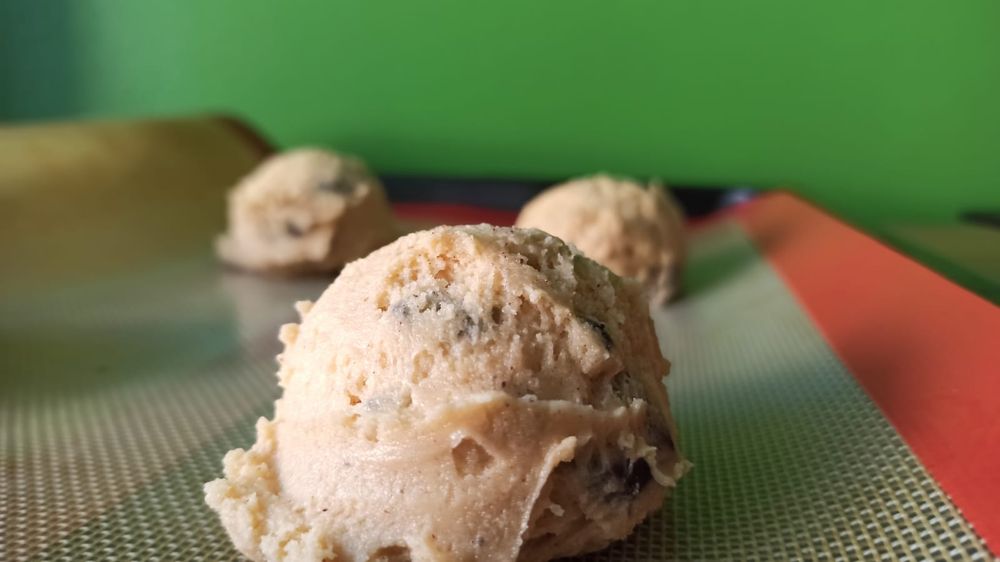Un, kabartma tozu, tuz, karbonatı eleyerek çırpılmış karışıma ekleyelim. Topaklanma olmamasına dikkat edelim. Bir spatula yardımı ile çikolata parçacıklarını karışıma ekledikten sonra karıştıralım. Mümkünse hamuru dinlendirdikten sonra 90 gramlık toplar şeklin de fırın tepsisine arada boşluk bırakarak dizelim ve daha önce 170 dereceye ayarladığınız fırına verelim.