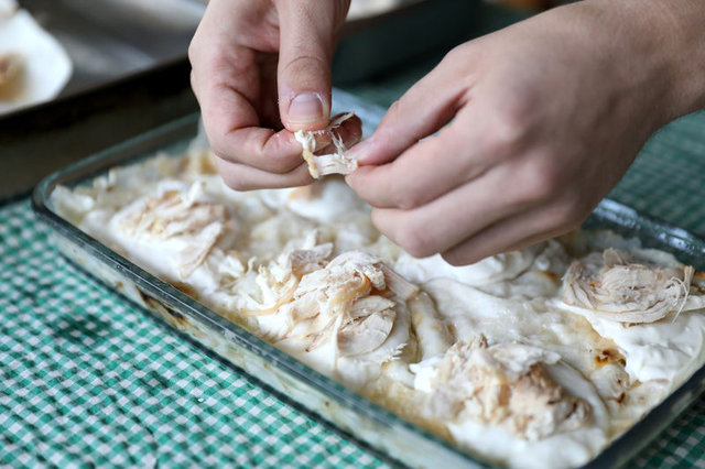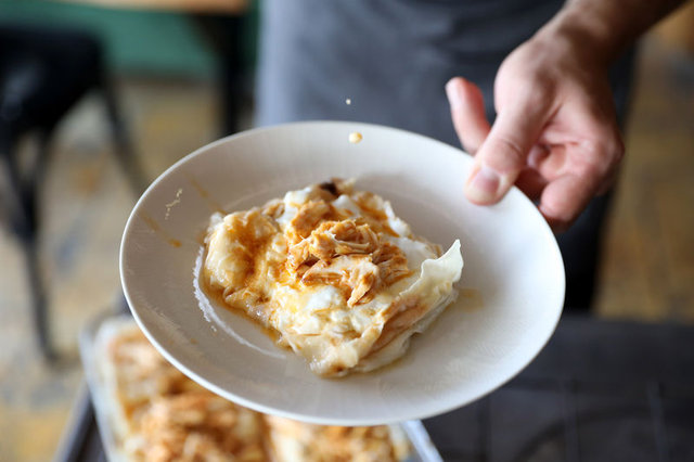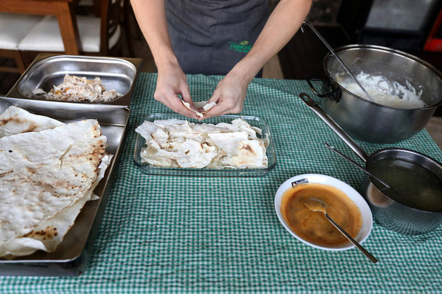 Bursa'da bir işletmenin müşterilerine sunduğu, kuru yufka, tavuk, tavuk suyu, yoğurt ve tereyağı ile yapılan damat paçası, yoğun ilgi görüyor.