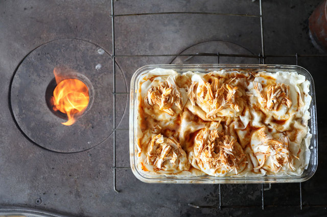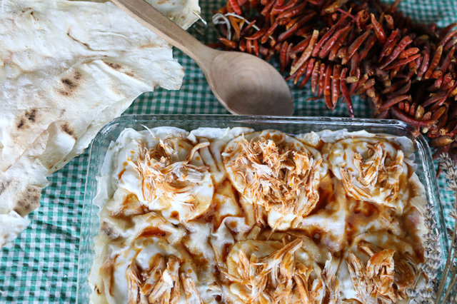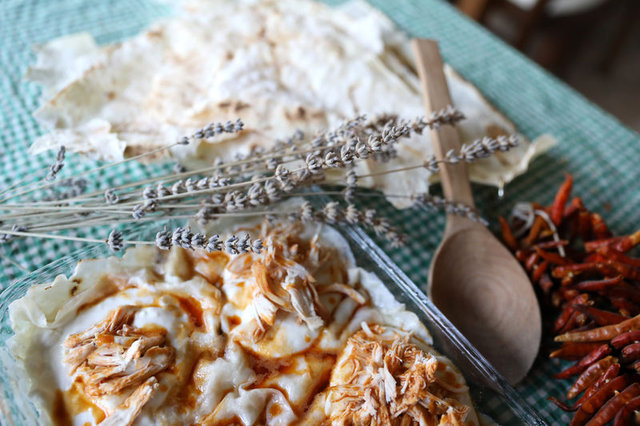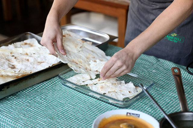 Senelerce kullandı ve elindeki bu kuru yufkaları bir tavuk ya da et suyuyla ıslatıp üzerine tavuk ya da et parçaları koyup servis etti. Aslında bir yokluk yemeği ama bu yokluğa rağmen içine koyduğu o küçük altınla bu yoklukta paylaşmayı da anlatan bir yemek diye konuştu.