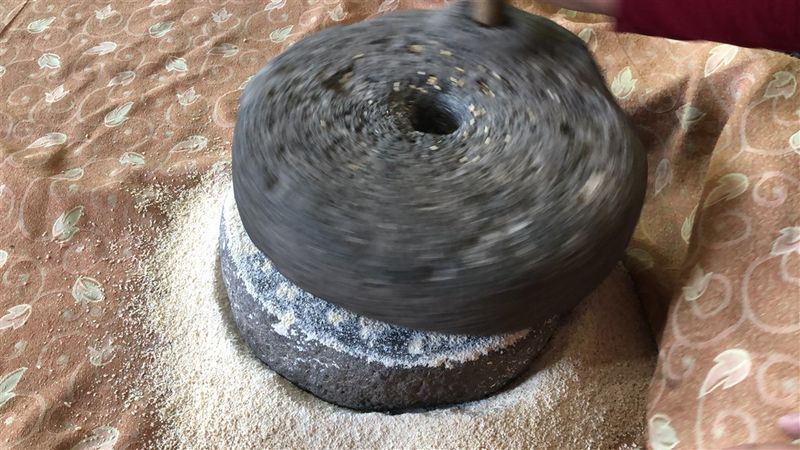 Kars Kafkas Atlı Spor Kulübü binasında davetlilere haşıl hazırlayan Menice Başkaya, bulguru öğütmek için önce taşları hazırladı. Başkaya, ardından da bulgurları azar azar taşın içine atarak, bilek gücüyle çevirdi. Haşılın ana malzemesini hazırlayan Başkaya, daha sonra yemeğini pişirip, misafirlere sunuma hazır hale getirdi.
