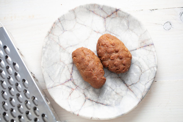 Cevizden biraz büyük parçalar kopararak yuvarlayın ya da süzgeç, rende gibi aparatlar ile şekil verin.