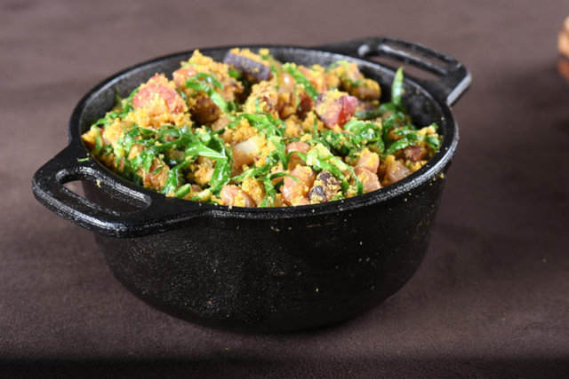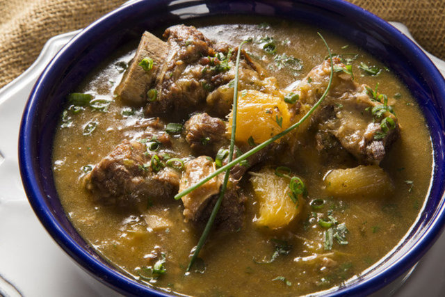 Tuzlanmış ve kurutulmuş etten oluşan yemekte, çeşitli otlar ve fasulyeler bulunuyor.