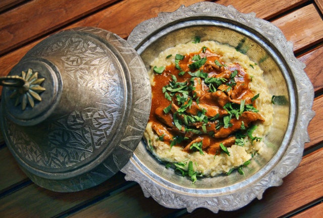 Moğol mutfağından gelen yemek, Paneer peyniri, soğan, badem ezmesi ve köri baharatından zengindir.