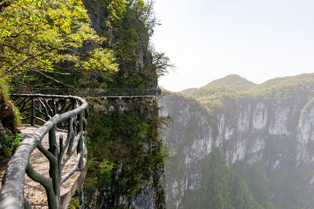 Dağın kenarında tahta köprüler ve yollar bulunuyor. Buralarda yürüyebilen turistler, yerden tam 1.400 metre yükseklikte manzarayı izleme şansına sahip oluyor.