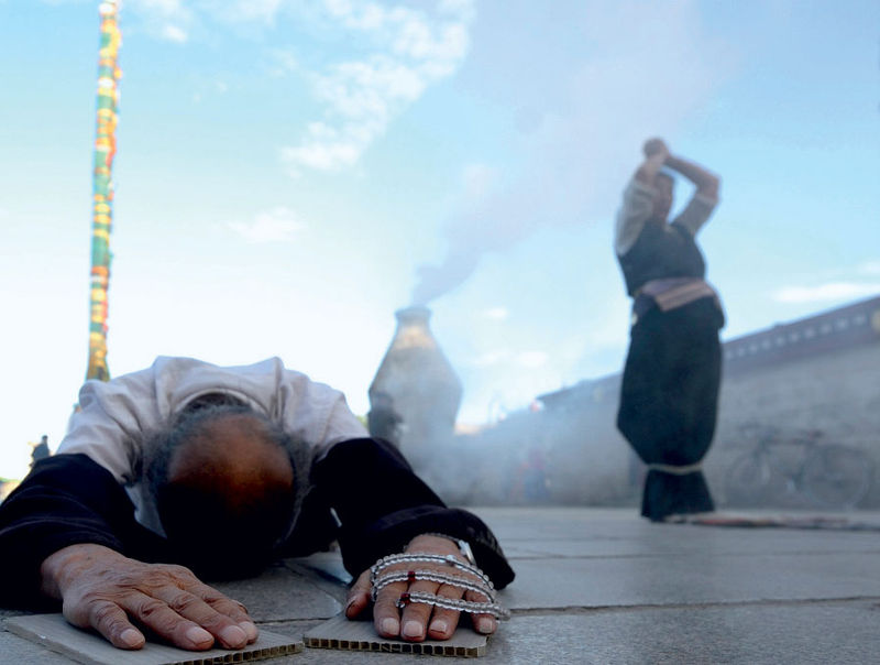Herkes sokaklarda, yerlere yatıp sürünerek dua ediyor. Bir de ‘prayer wheel’ diye bir şey var ellerinde, boyuna çeviriyorlar. Bu çevirme dahil her şeyi saat yönünde yapıyorlar. Alışveriş, tapınak ziyareti vs... Tabii anlayana kadar üzerimden bir grup silindir gibi geçiyordu az daha. Ters yönde yürüyormuşum. Düşünün ki İstiklal Caddesi’nden Tünel’e doğru yürüyorsunuz. Bir de bakıyorsunuz herkes karşıdan geliyor. Kediler bile.