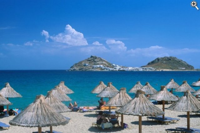 Mavi beyaz boyalı tipik küçük Ege evleri ve daracık sokaklarıyla, Yunan adalarının en kozmopolit ve popüler olanı kuşkusuz Mikanos. Yunanistan’a ait onlarca ada içinde en çok ziyaret edilen ve en pahalı Yunan adası. Daimi olarak 5.500 kişinin yaşadığı Mikanos’ta yaz aylarında bu sayı 50 bine ulaşıyor. 1453’ten 1832’ye kadar Osmanlı hâkimiyetinde bulunan adanın müdavimleri dünya jet sosyetesi. Özellikle çıplaklar kampıyla gay turizminin gözdesi. “Gece hayatı bütün kalıpların dışına çıkan, sınır tanımaz ve uçuk kaçık” diye tanımlanıyor. ‘Hippie’lerin ve ‘backpacker’ların keşfiyle ününe kavuşan ‘Paradise Beach’ adanın en ünlü plajı. Kalafatis, Platys Yialos, Elia ve Agia Anna ise adanın en güzel plajları.