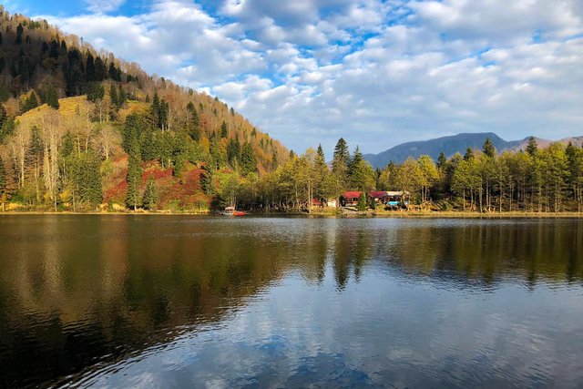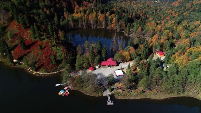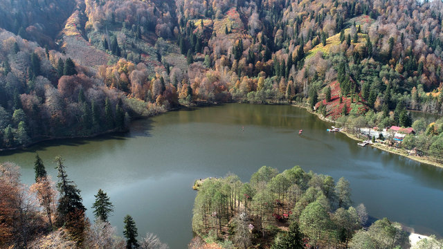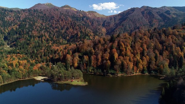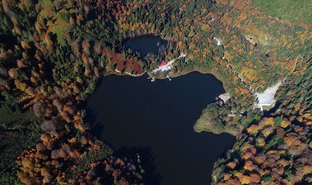 Sonbaharın kendini göstermeye başladığı Artvin'in Borçka ilçesindeki Karagöl'de renk şöleni yaşanıyor.